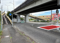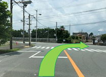 駅西陸橋南交差点を右折後に側道へ進入