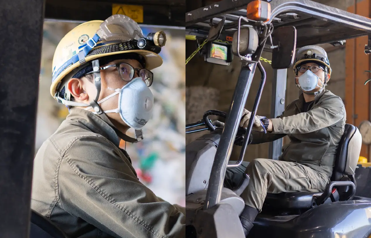 製造部で、廃棄物をRPF(固形燃料)にリサイクルする仕事をしています。日々の作業でトラブル対応を覚えたり、前よりスムーズに動けるようになったりと、自分の成長を実感できるのがやりがいです。チームの雰囲気も良く、環境保全に関わる誇りを持って働けています。